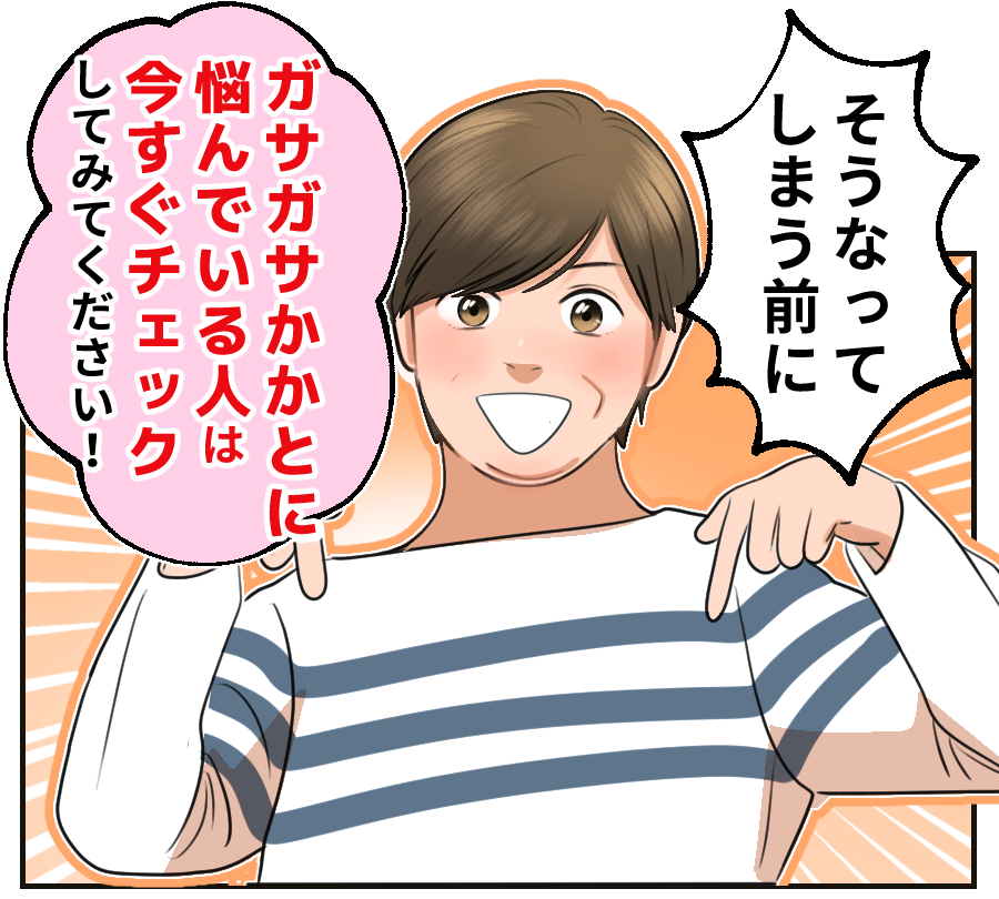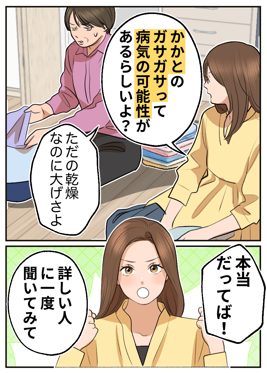 かかとのガサガサ*に悩んで40歳過ぎてからはもう手を付けられてない状況です。原因がただの乾燥ではないことにびっくりしました。私みたいに長くかかとのガサガサ*に悩んでる人に本当におすすめしたいです。